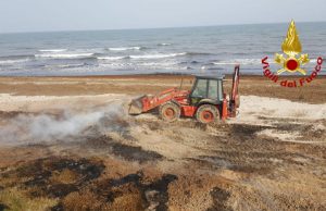 Intervento dei Vigili del fuoco a seguito di alcune segnalazioni pervenute alla Sala operativa del 115, per un incendio di cumuli di alghe marine...