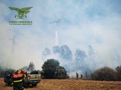 Fiamme ad Arborea: interviene un elicottero del Corpo forestale